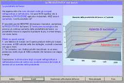 Alle schede sono associati i soliti questionari V/F. Vi si accede al termine della lettura di ogni scheda. Verificano conoscenze e comprensione/estrapolazione. I risultati vengono archiviati. |